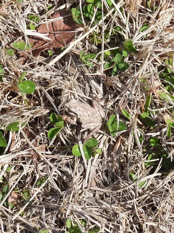 茶色く体色を変えたアマガエルをゲストが発見。声もよく聞けました。