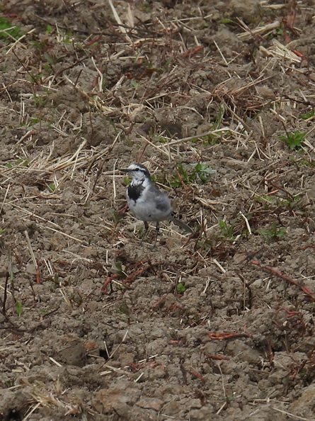 田んぼで餌の昆虫を探すハクセキレイ。