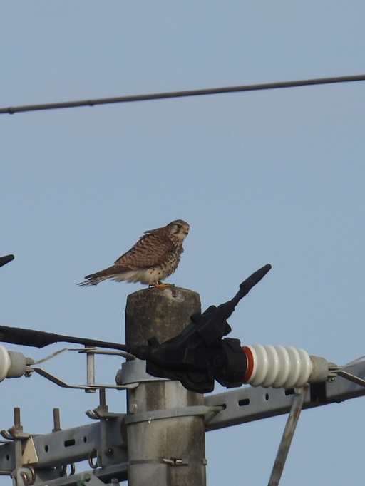 電線にとまっていたのは、カラスくらいの大きさの鷹ノスリ。