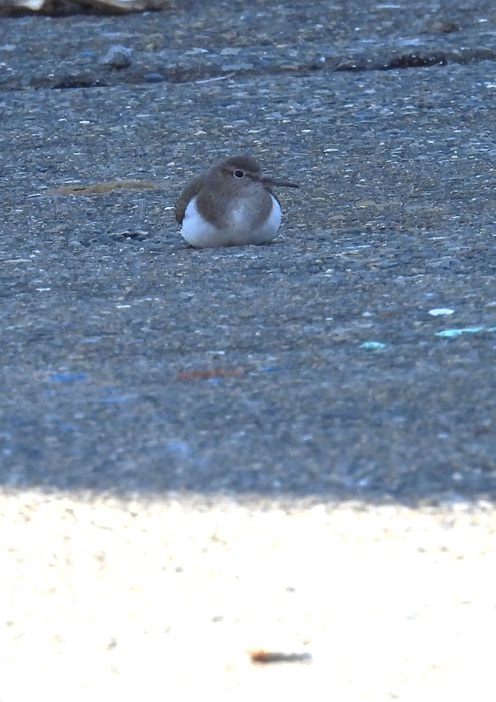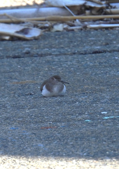 漁港の船揚げ場で、休息中のイソシギ。