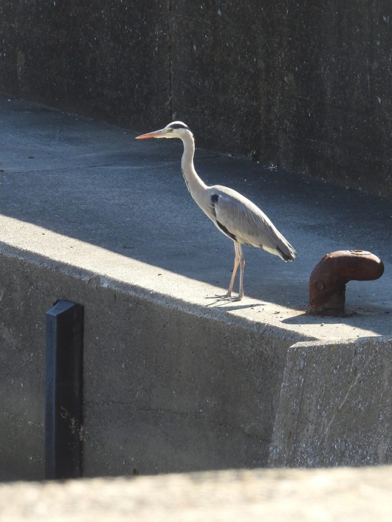 漁港に佇むのはアオサギ。大きいです!