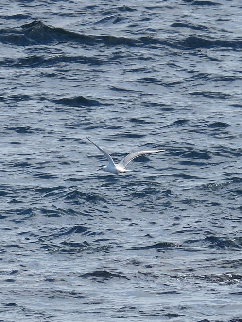 海面近くを飛行するのはユリカモメ。