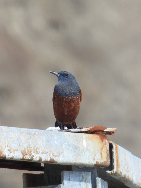 こちらは雄のイソヒヨドリ。雌とは違い、お腹の赤色と頭部から背中の青色が目立ちます。