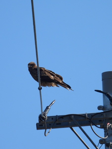 クロサギのすぐ上の電線にはトビの姿がありました。